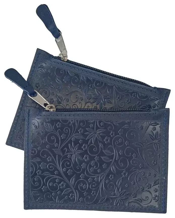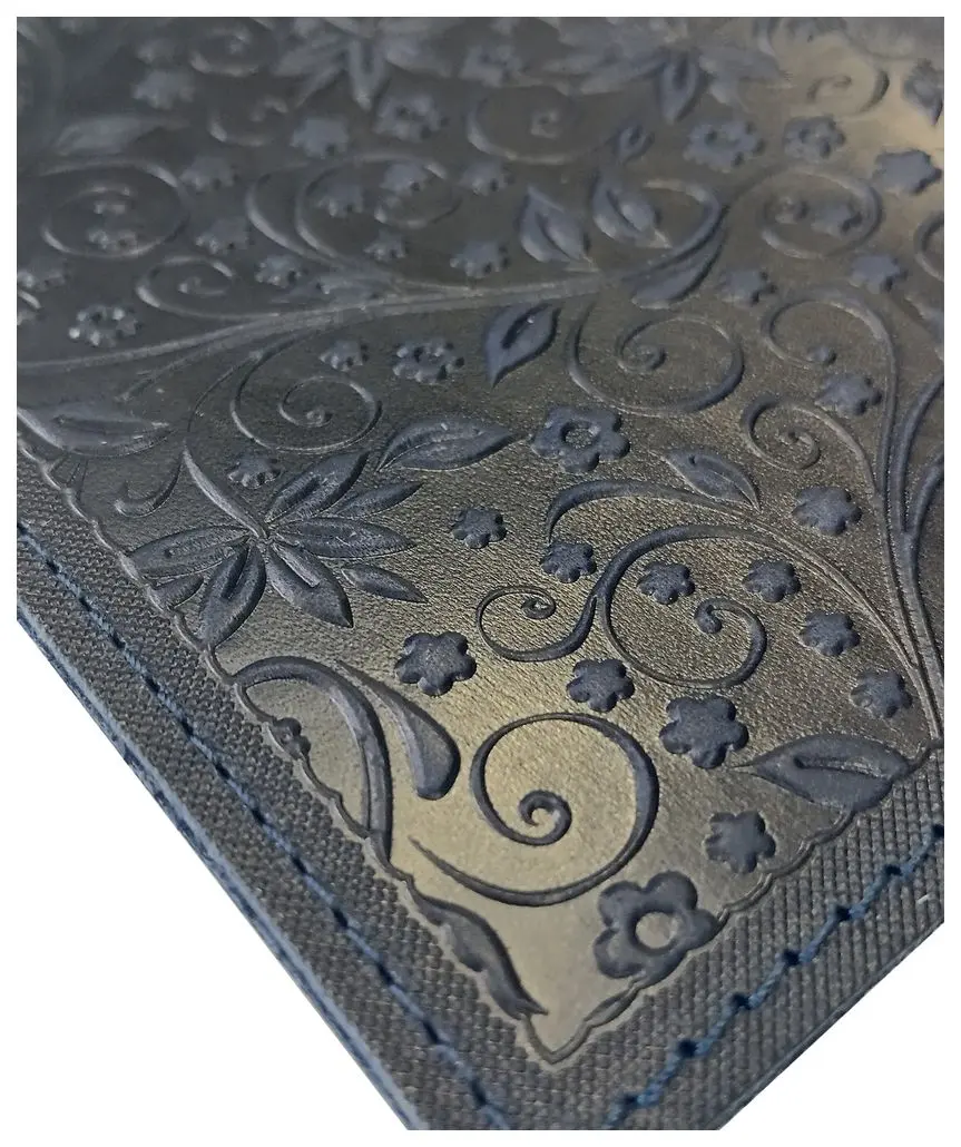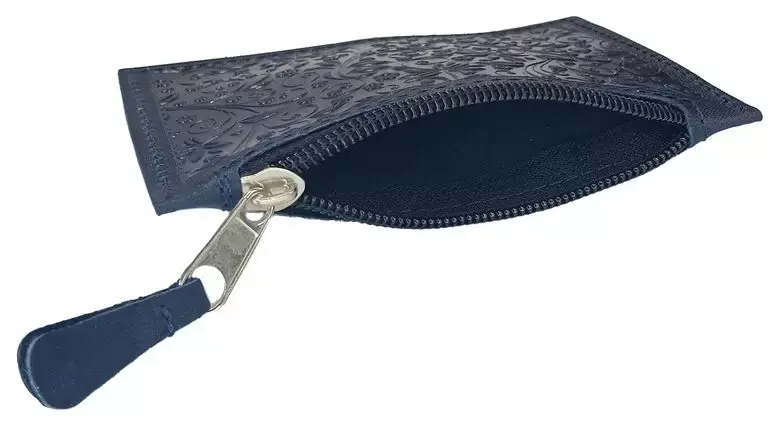 Кошелек для монет из натуральной кожи 12x8 см, синий, тиснение по коже конгрев "Флаверс"