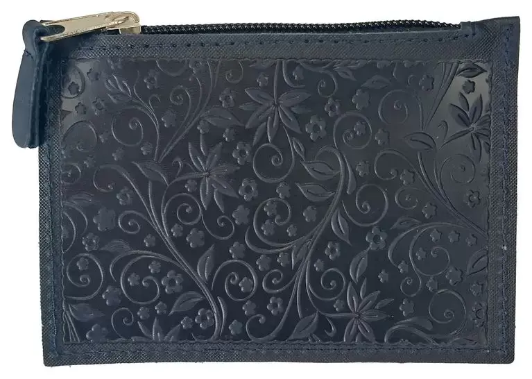 Красивый и модный кошелек для монет выполнен из натуральной кожи с блинтовым тиснением. Денежный мешочек имеет застежку-молнию. Мешочек для монет имеет небольшие размеры, что позволяет поместить его в карман или отделение сумки. Кошелек для мелочи несложно захватить с собой.