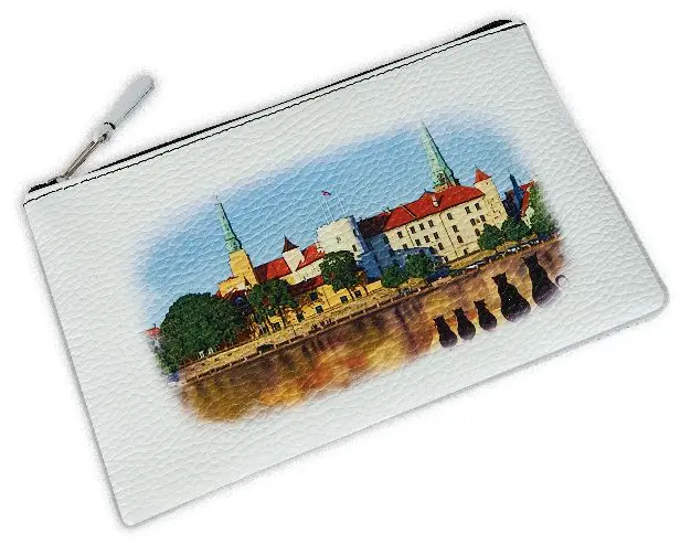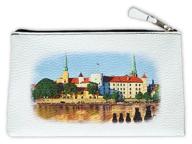 Косметичка из натуральной кожи 21x0,5x12,5 см, цветной рисунок по коже "Пять котов"