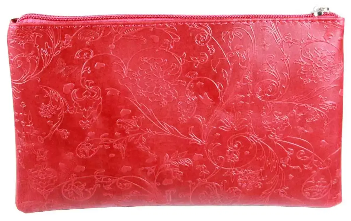Косметичка из натуральной кожи 21x0,5x12,5 см, красная, тиснение по коже конгрев "Флаверс"