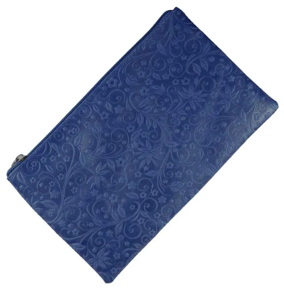 Косметичка из натуральной кожи 21x0,5x12,5 см, синяя, тиснение по коже конгрев "Флаверс"