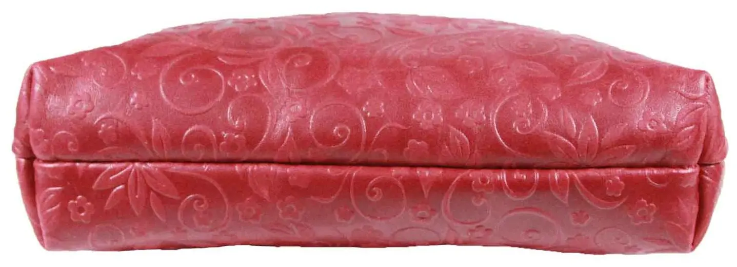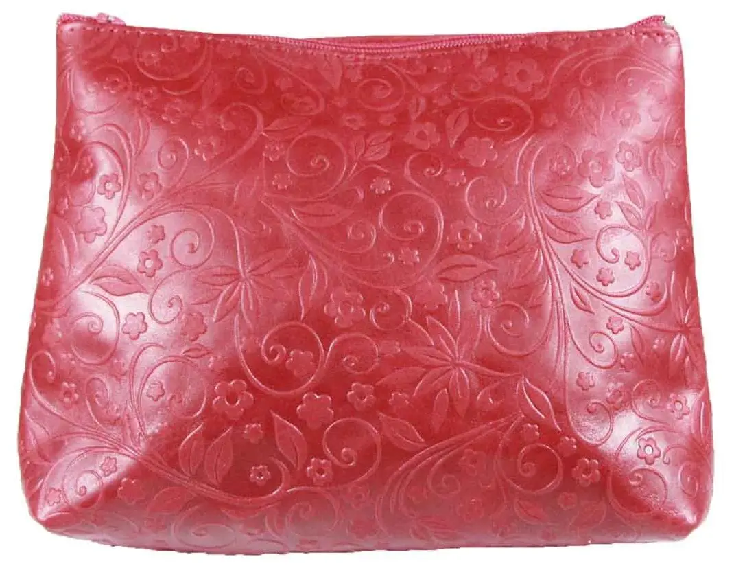 Косметичка из натуральной кожи 21x5x14 см, красная, тиснение по коже конгрев "Флаверс", объемная