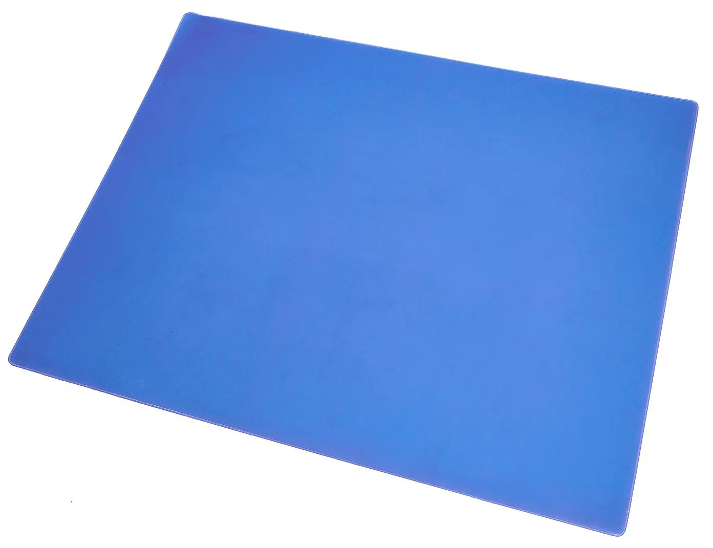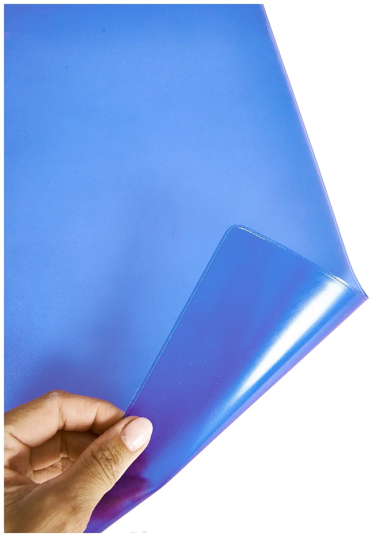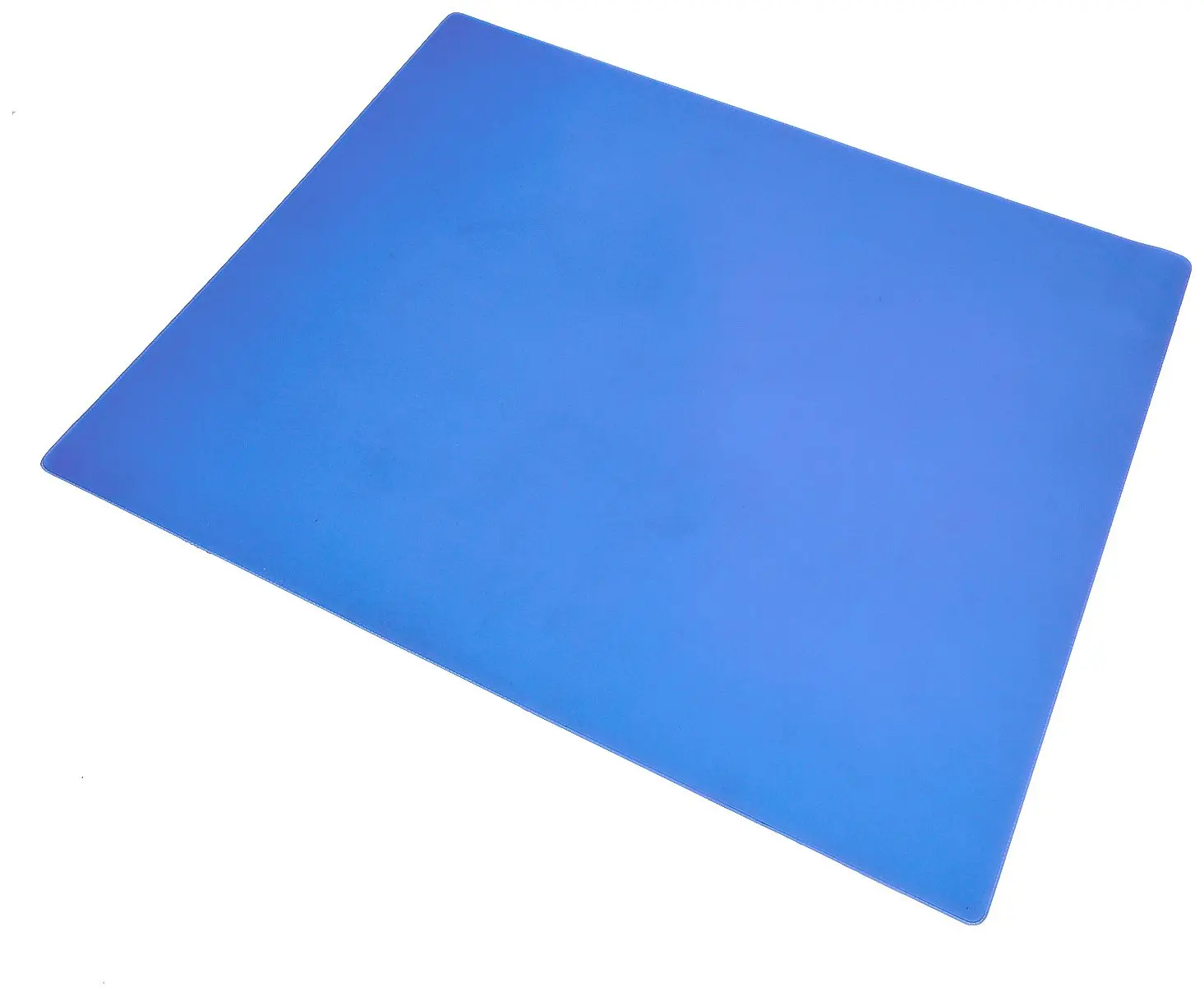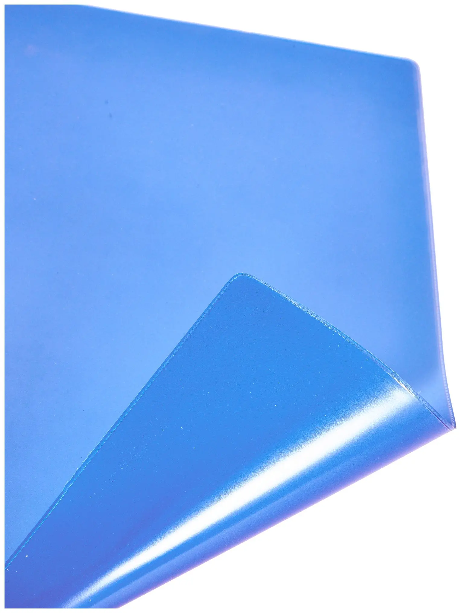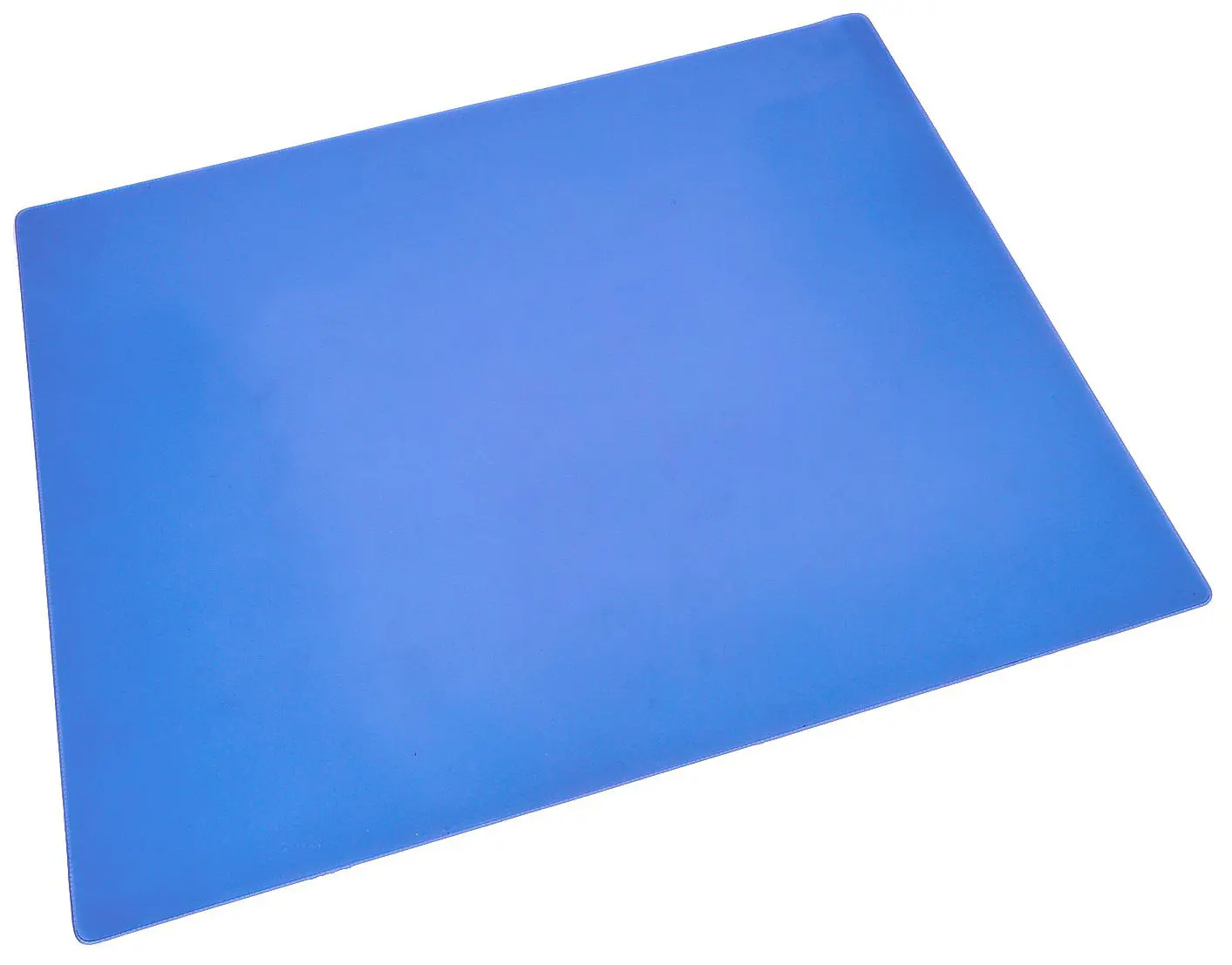 Настольный коврик из матового синего ПВХ – 500 мкм. Размер 450*550 мм. Прочный материал предохранит Ваш стол от разного рода повреждений и обеспечит удобство при письме.