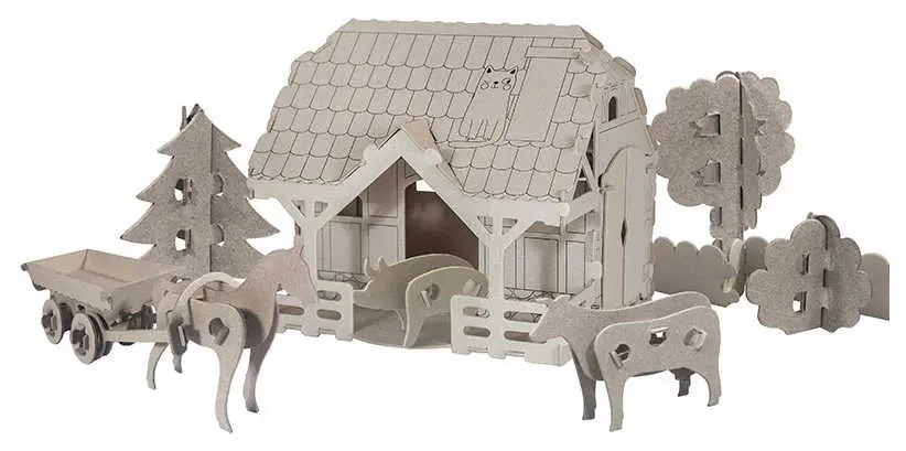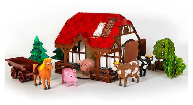 Набор для творчества Конструктор-Раскраска набор "Ферма" в гофрокоробке, в комплекте с красками, кисточкой и мягкой застывающей глиной