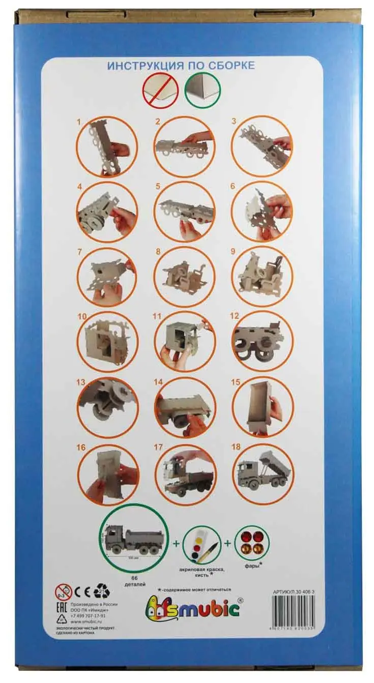 Конструктор раскраска для детей от 3 лет. Изготовлено из экологичного картона. Лего собирается в 3D конструкцию без клея и ножниц. Раскрашивется собранный конструткор. Можно использовать любые средства для декорирования. Лучше всего подходит акриловая краска. Нераскрашенный набор.