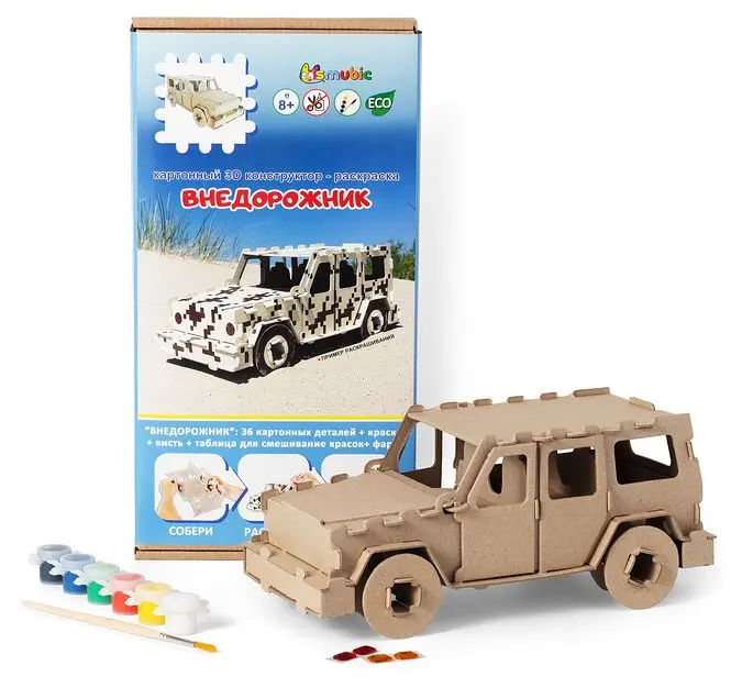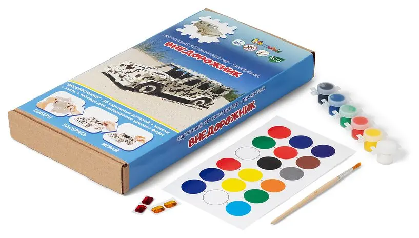 Набор для творчества Конструктор-Раскраска Техника "Внедорожник" в гофрокоробке, в комплекте с красками, кисточкой и фарами