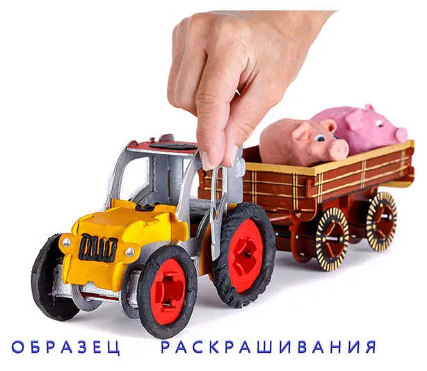 Набор для творчества Конструктор-Раскраска "Трактор с прицепом" в гофрокоробке, в комплекте с красками, кисточкой и мягкой застывающей глиной