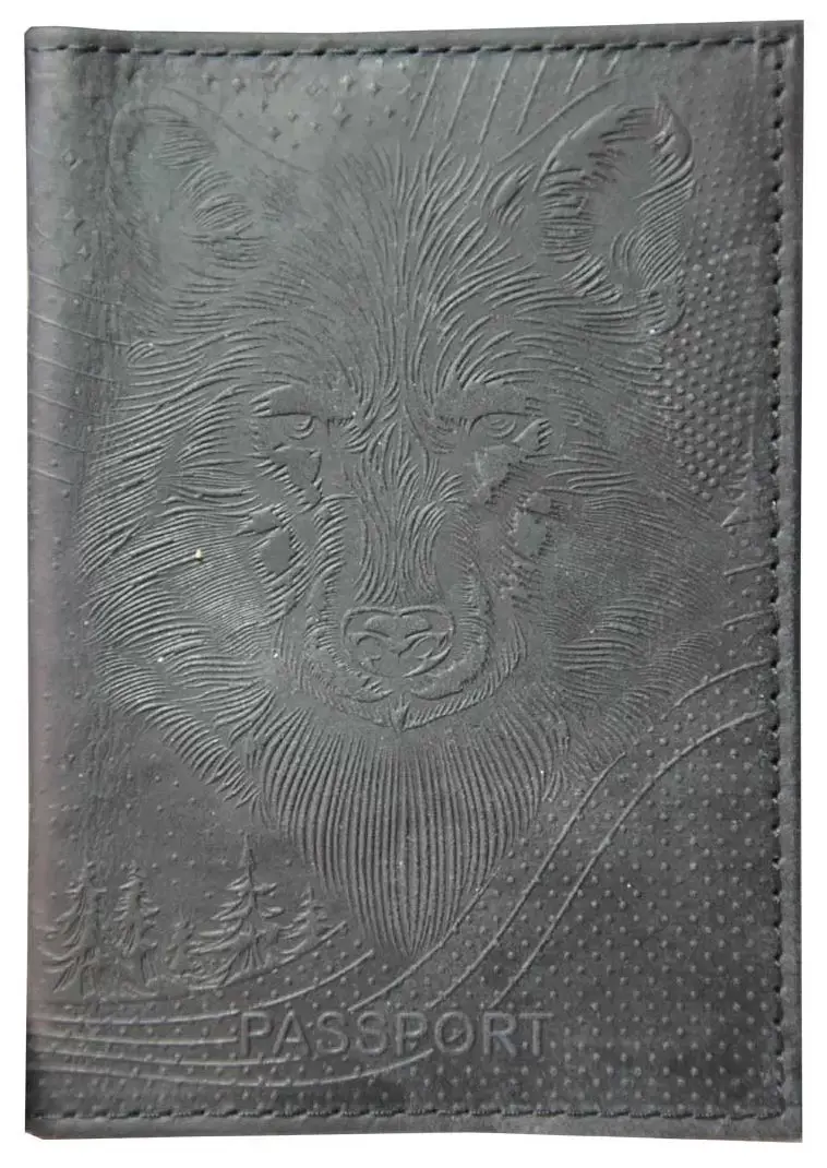 Обложка для автодокументов из натуральной кожи, черный, сплошное тиснение по коже "Волк"