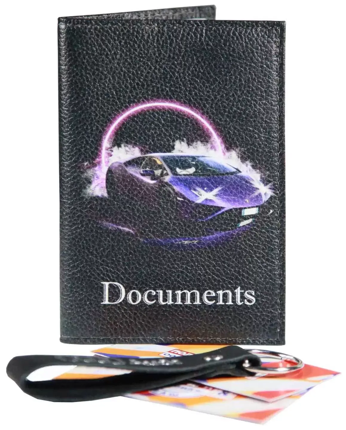 Обложка для автодокументов из натуральной кожи, цветной рисунок по коже "Скорость"