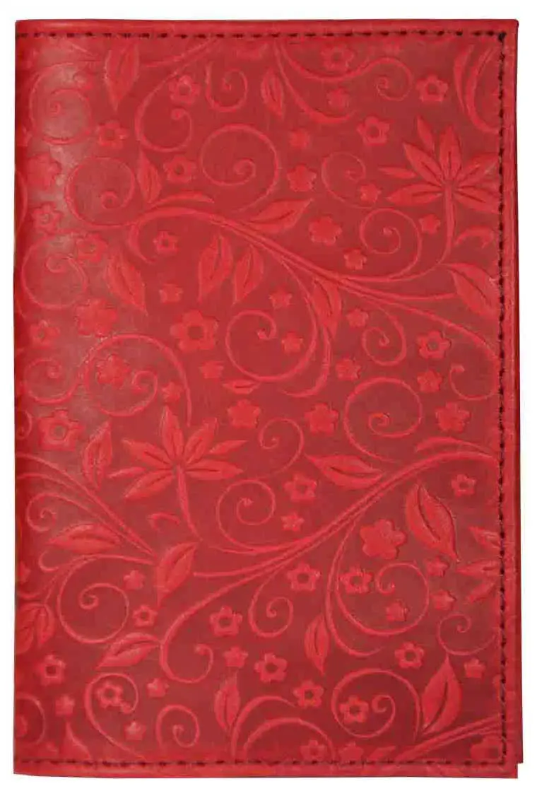 Обложка для автодокументов из натуральной кожи, красный, сплошное тиснение по коже "Флаверс"