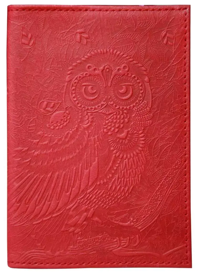 Обложка для автодокументов из натуральной кожи, красный, сплошное тиснение по коже "Сова"