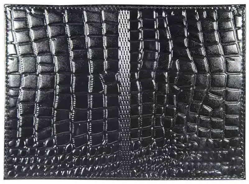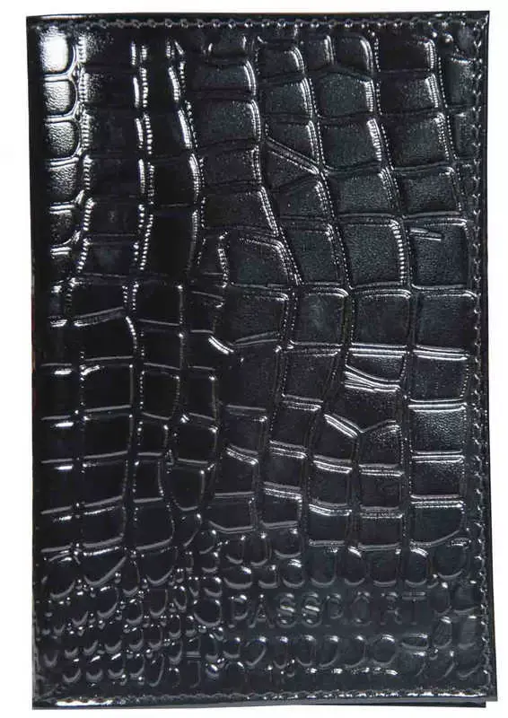 Обложка для паспорта из лакированной натуральной кожи, черный, сплошное тиснение по коже "Passport Аллигатор"
