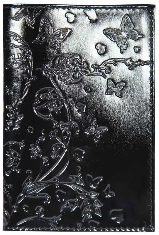 Обложка для паспорта из лакированной натуральной кожи, черный, тиснение по коже конрев "Вдохновение"
