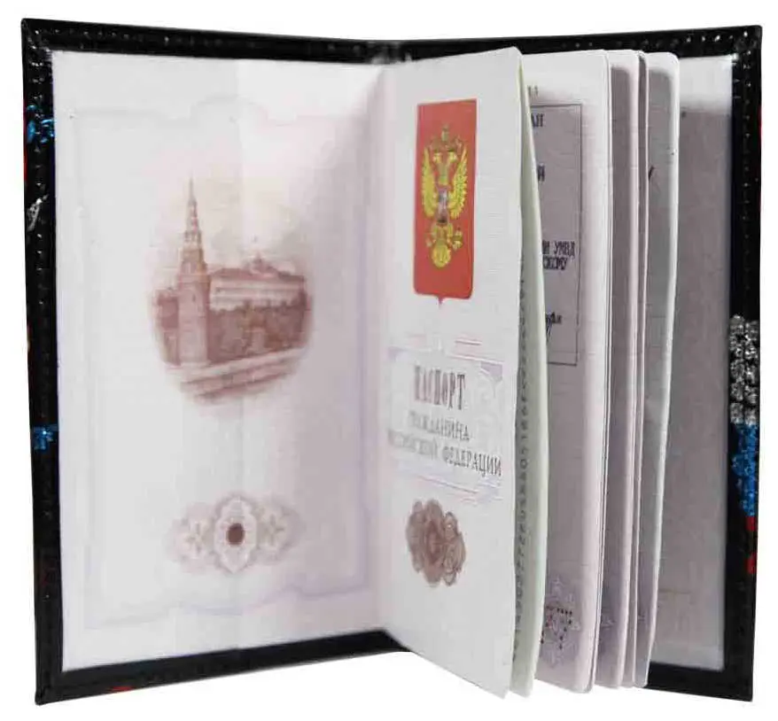 Обложка для паспорта из лакированной натуральной кожи, черный, тиснение тремя цветами "Летящий Флаг"
