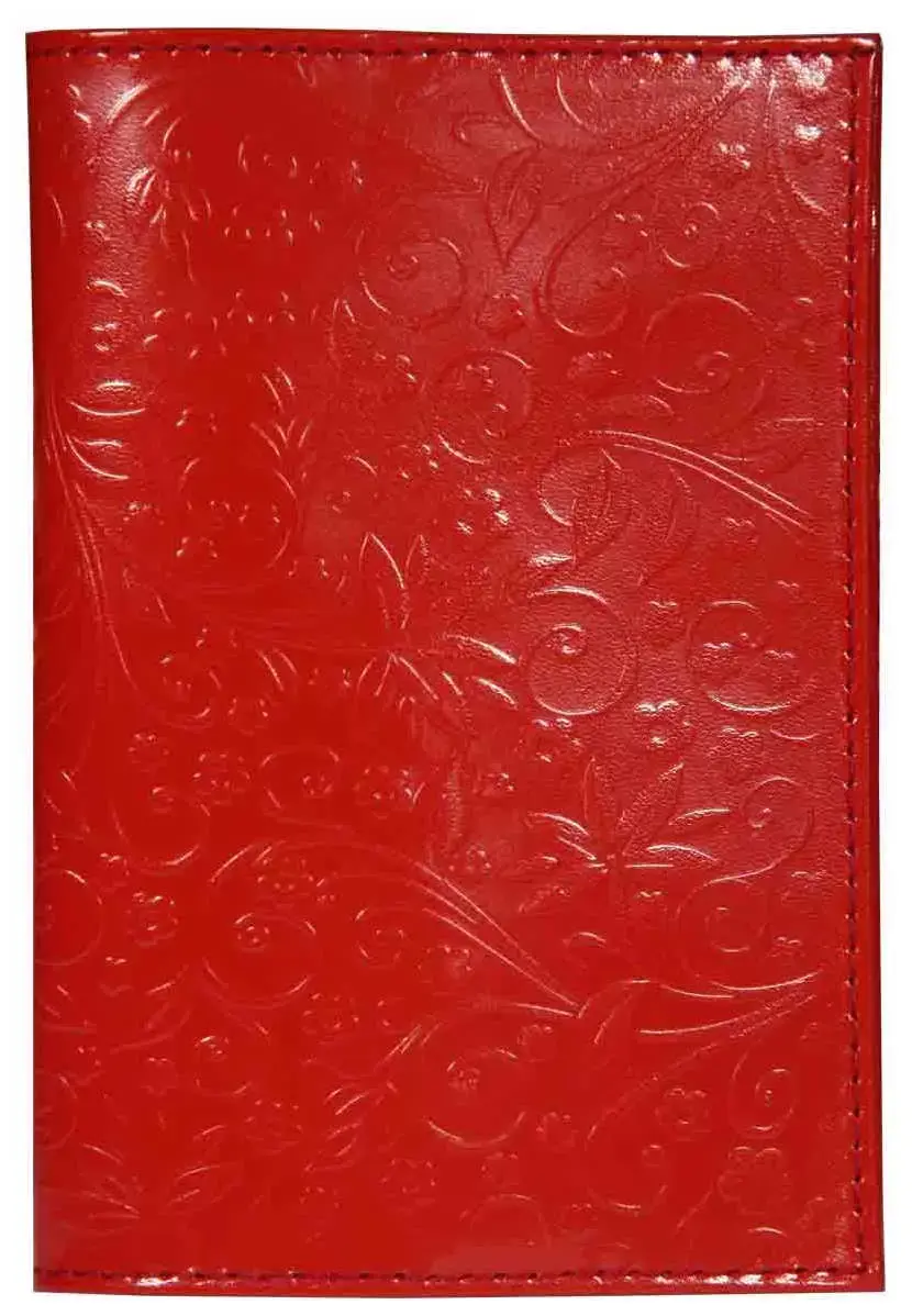 Обложка для паспорта из лакированной натуральной кожи, красный, сплошное тиснение по коже "Флаверс"