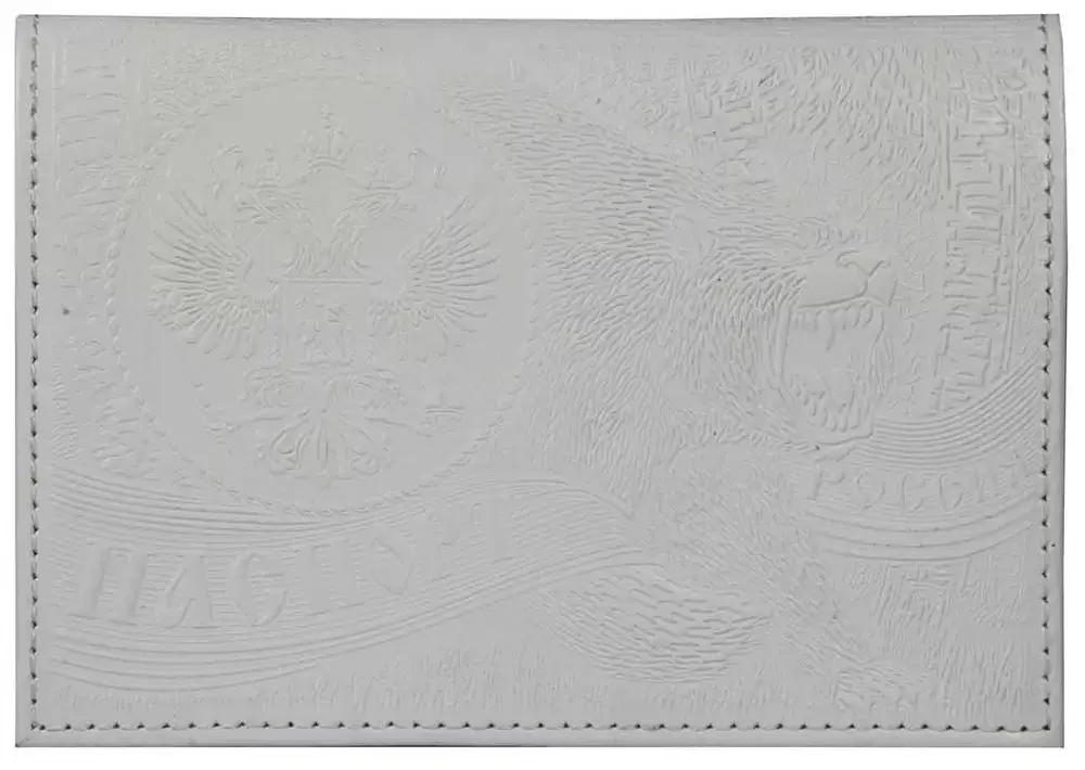 Обложка для паспорта из натуральной кожи, белый, тисн.блинтовое"Медведь"