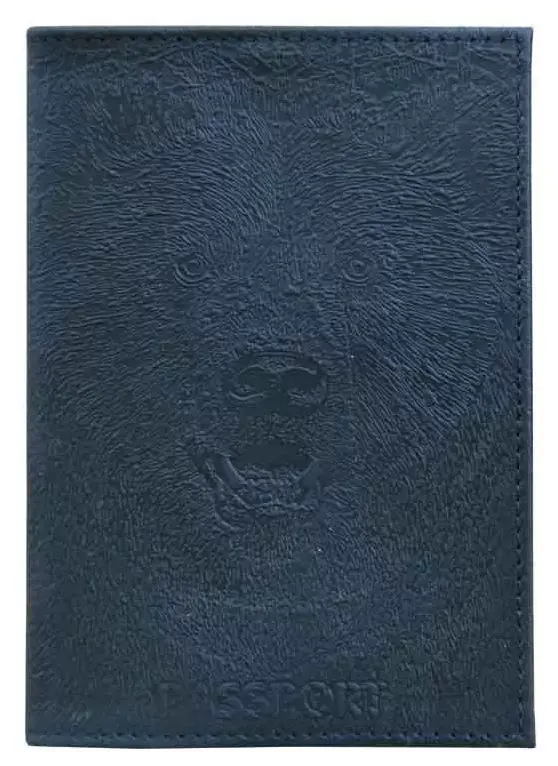 Обложка для паспорта из натуральной кожи, черный, сплошное блинтовое тиснение по коже "Медведь 3D"