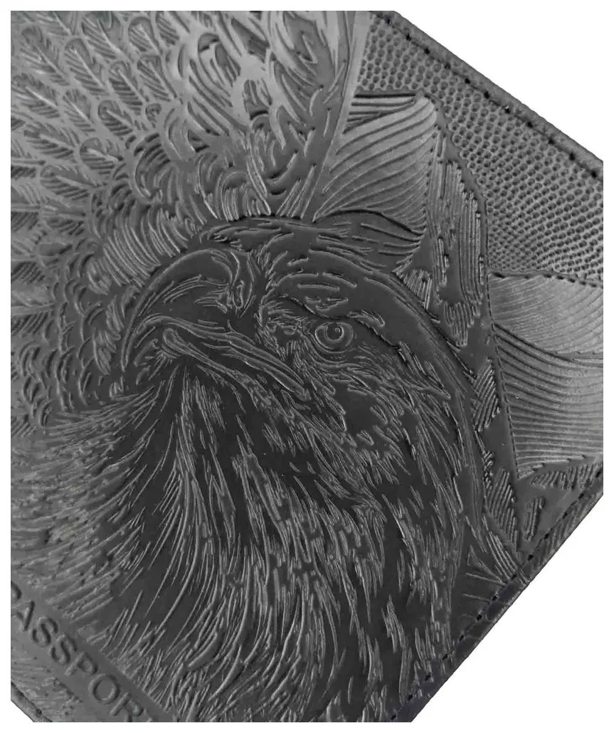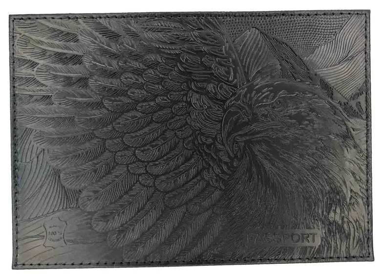 Обложка для паспорта из натуральной кожи, черный, сплошное тиснение по коже "Орел"