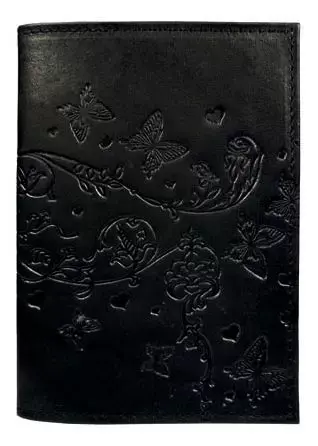 Обложка для паспорта из натуральной кожи, черный, тиснение по коже конрев "Вдохновение"