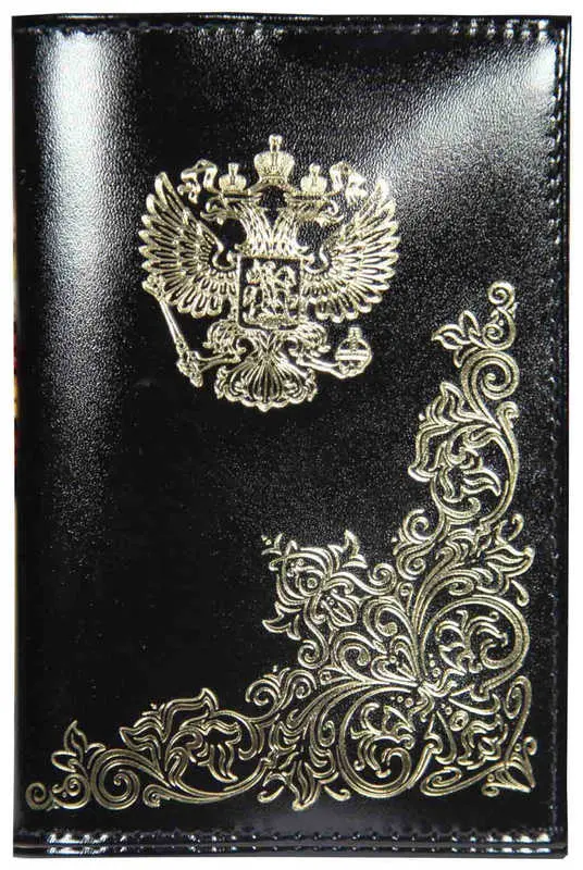 Обложка для паспорта из натуральной кожи, черный, тиснение золотом "Народная"