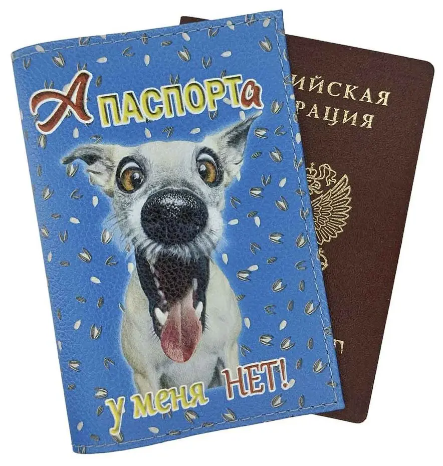 Обложка для паспорта из натуральной кожи, цветной рисунок по коже "А паспорта у меня нет!"
