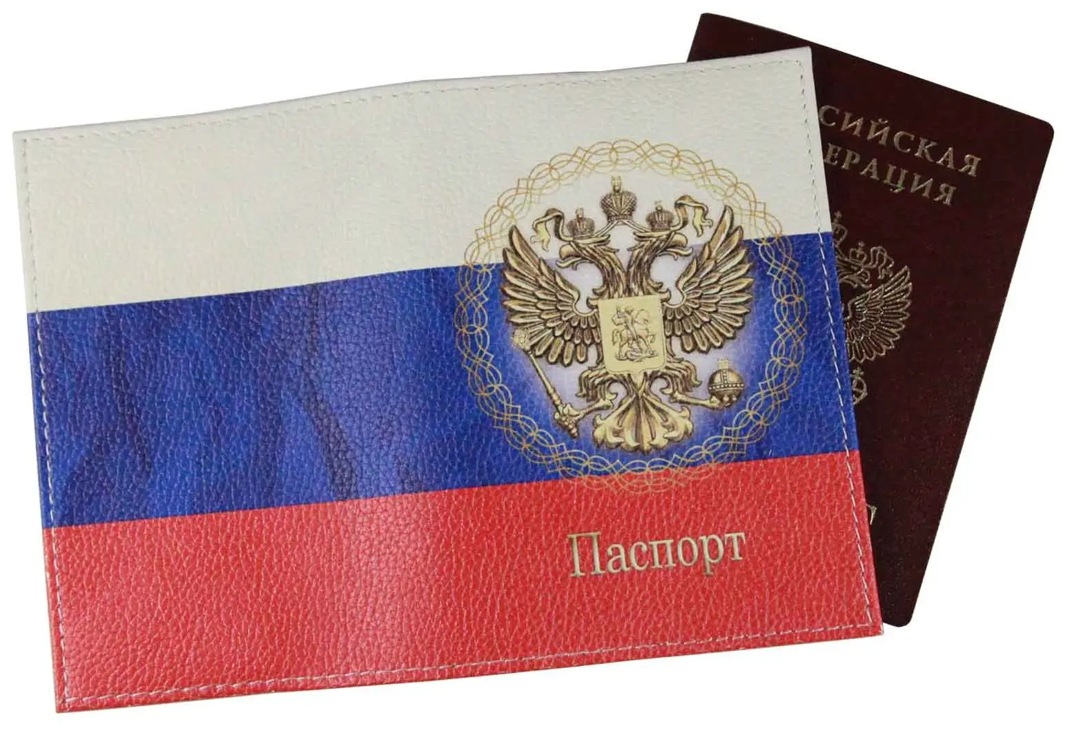 Обложка для паспорта из натуральной кожи, цветной рисунок по коже "Герб"