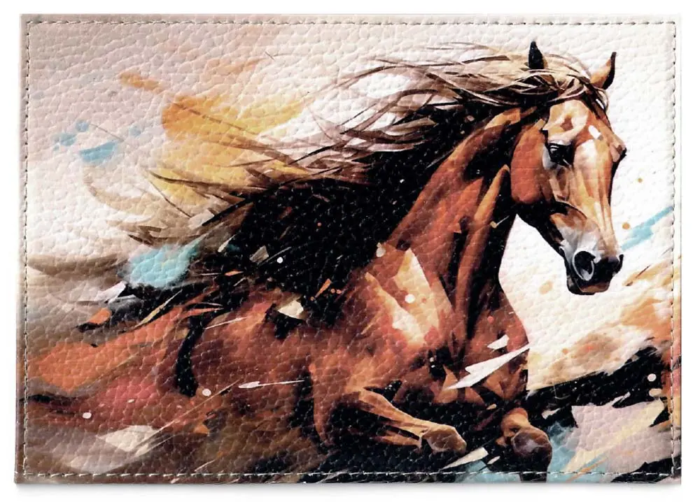 Обложка для паспорта из натуральной кожи, цветной рисунок по коже "Огненная лошадь"
