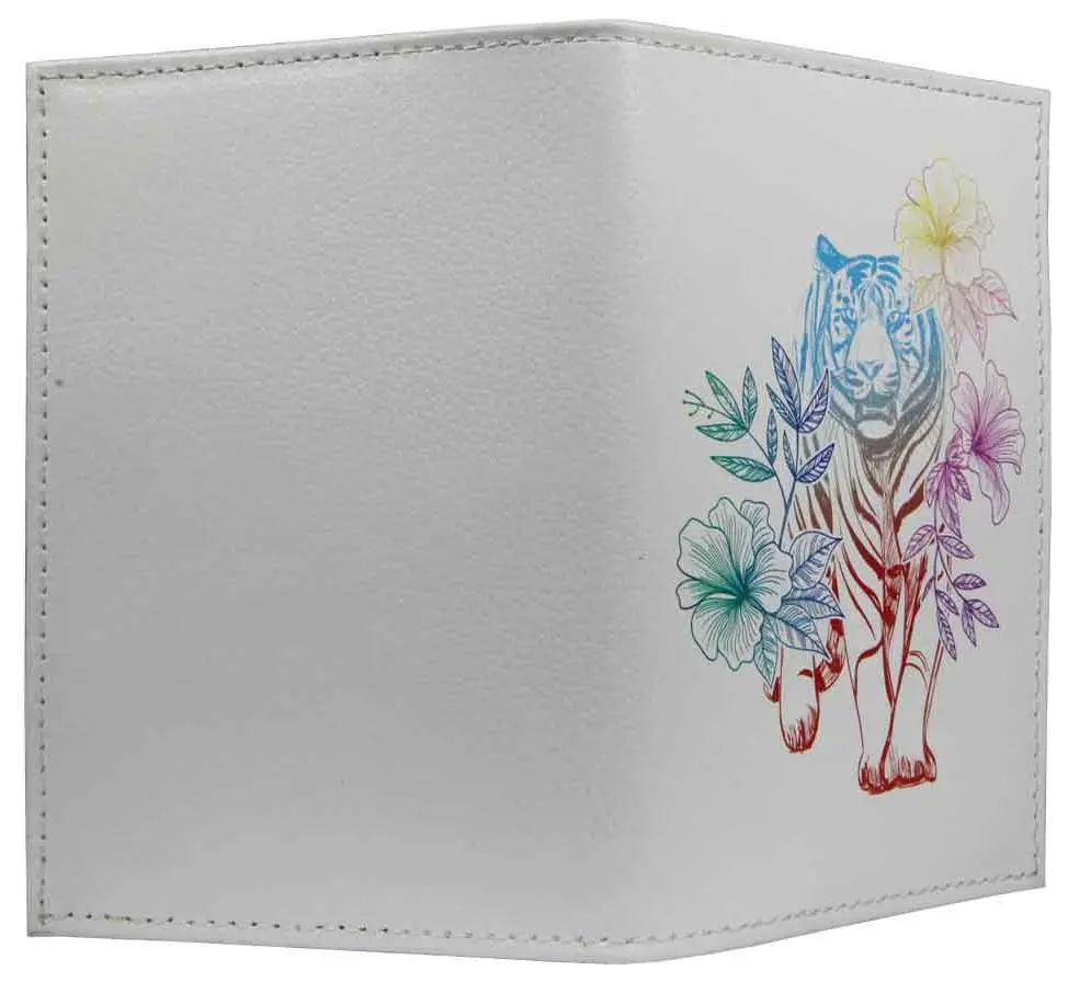 Обложка для паспорта из натуральной кожи, цветной рисунок по коже "Радужный тигр"
