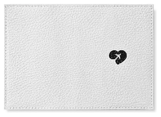 Обложка для паспорта из натуральной кожи, цветной рисунок по коже "Самолет в сердце на белом"