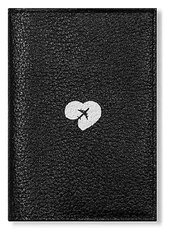 Обложка для паспорта из натуральной кожи, цветной рисунок по коже "Самолет в сердце на черном"