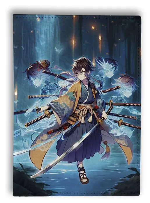 Обложка для паспорта из натуральной кожи, цветной рисунок по коже "Самурай"