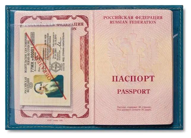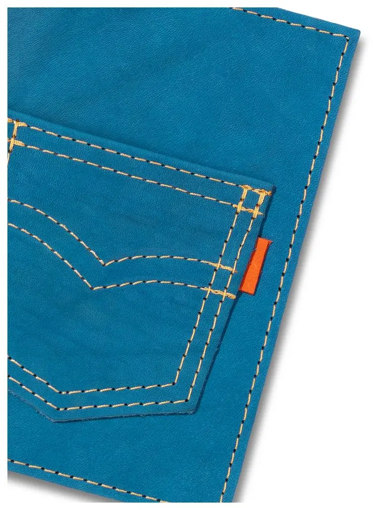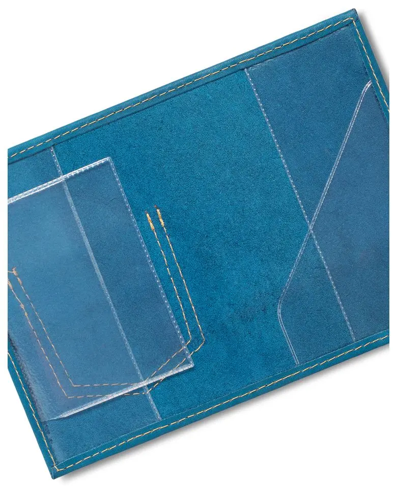 Обложка для паспорта из натуральной кожи, голубой, с кармашком "Джинсики"