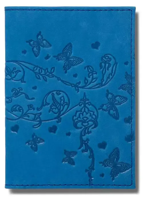 Обложка для паспорта из натуральной кожи, голубой, сплошное тиснение по коже "Вдохновение"