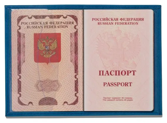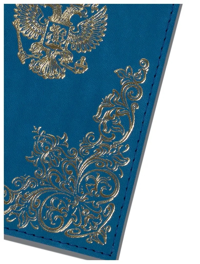 Обложка для паспорта из натуральной кожи, голубой, тиснение золотом "Народная"