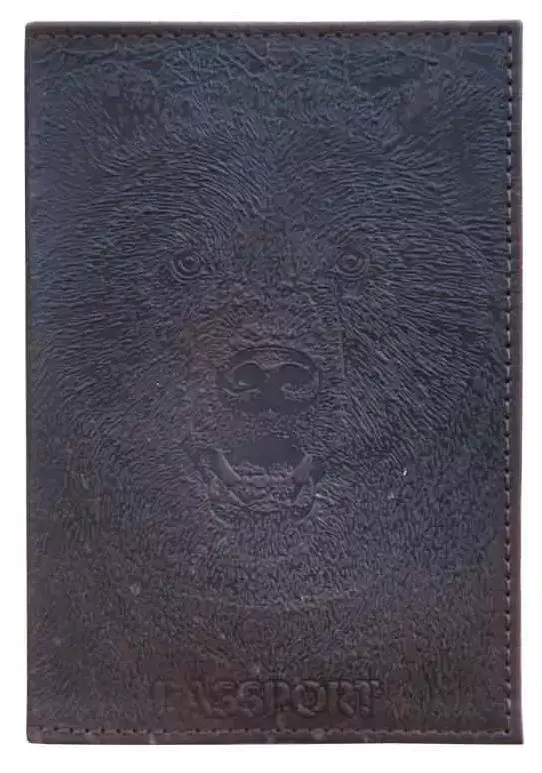 Обложка для паспорта из натуральной кожи, коричневый, сплошное блинтовое тиснение по коже "Медведь 3D"