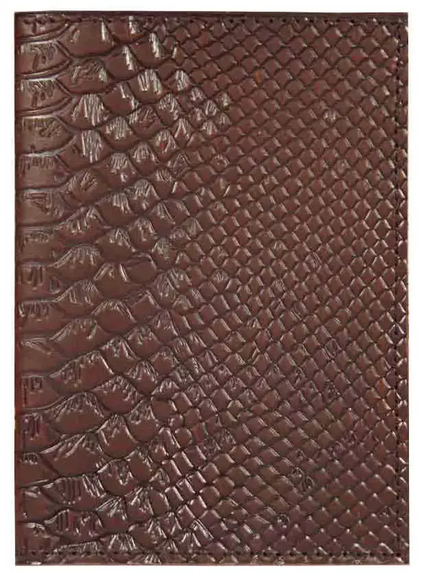 Обложка для паспорта из натуральной кожи, коричневый, сплошное блинтовое тиснение по коже "Питон"
