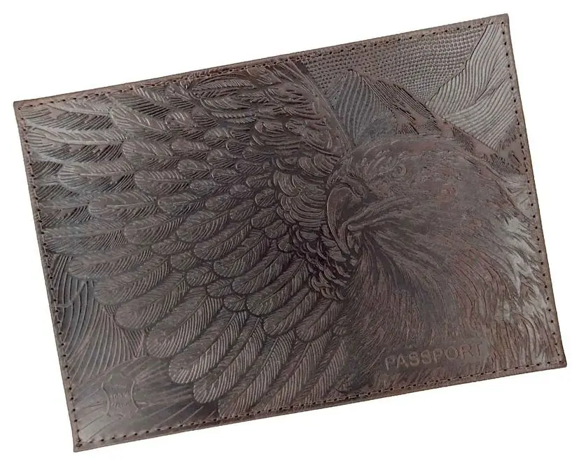Обложка для паспорта из натуральной кожи, коричневый, сплошное тиснение по коже "Орел"