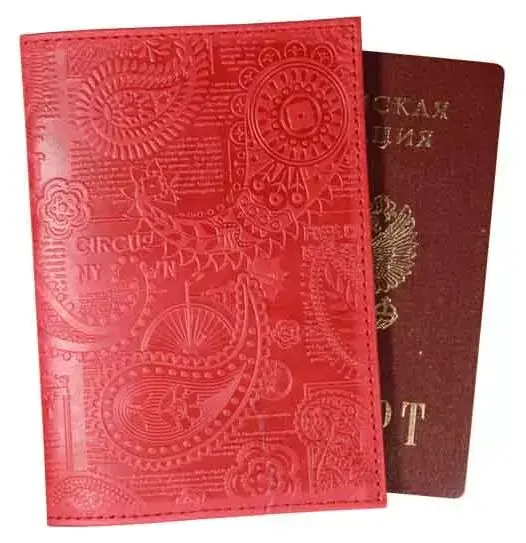 Обложка для паспорта из натуральной кожи, красный, сплошное блинтовое тиснение по коже "Индийский орнамент"