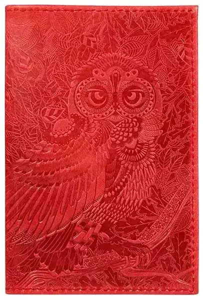 Обложка для паспорта из натуральной кожи, красный, сплошное тиснение по коже "Сова"