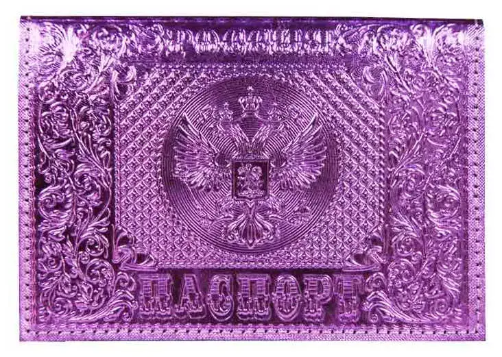 Обложка для паспорта из натуральной кожи, металлик сиреневый, тисн.блинтовое"РОССИЯ-ПАСПОРТ-ГЕРБ"