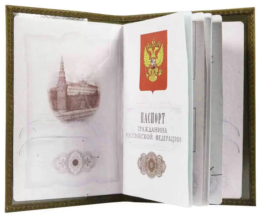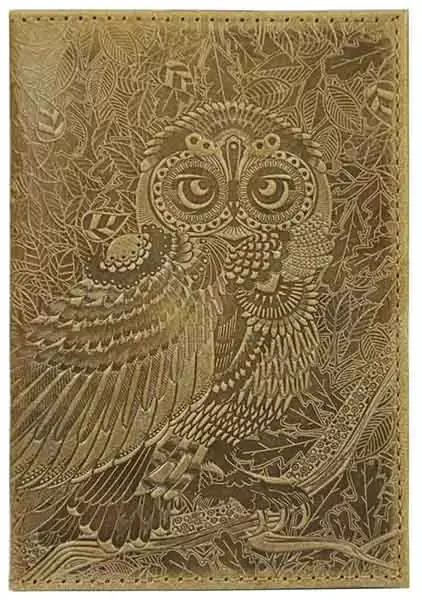 Обложка для паспорта из натуральной кожи, оливковый, сплошное тиснение по коже "Сова"