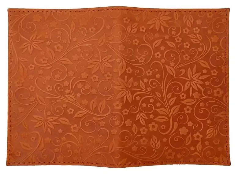 Обложка для паспорта из натуральной кожи, рыжий, сплошное тиснение по коже "Флаверс"