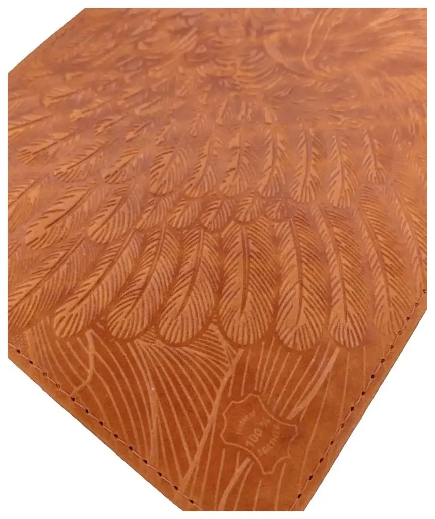 Обложка для паспорта из натуральной кожи, рыжий, сплошное тиснение по коже "Орел"
