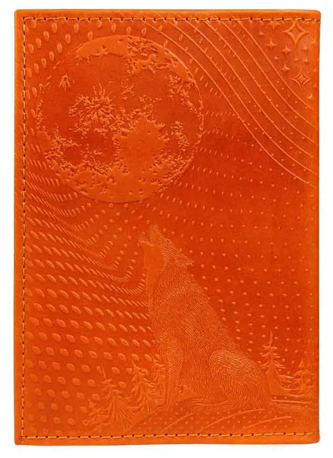 Обложка для паспорта из натуральной кожи, рыжий, сплошное тиснение по коже "Волк"