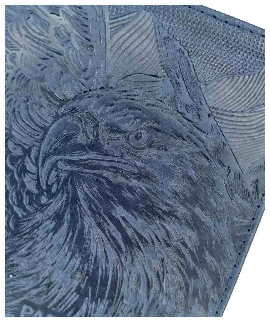 Обложка для паспорта из натуральной кожи, синий, сплошное тиснение по коже "Орел"