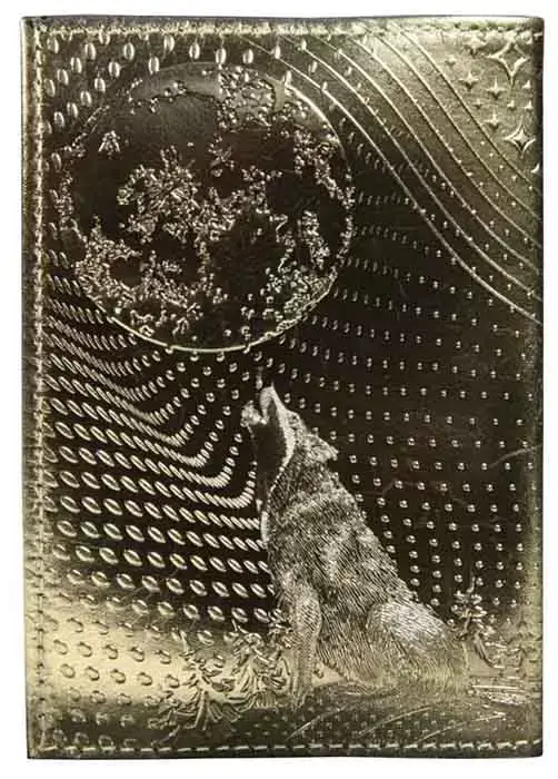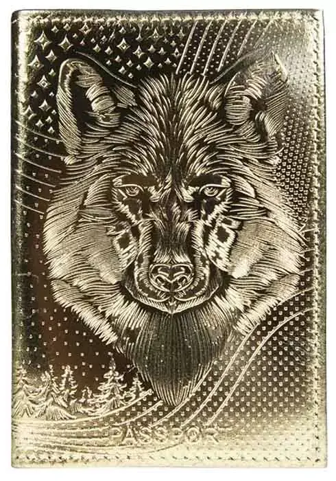 Обложка для паспорта из натуральной кожи, золотой, сплошное тиснение фольгой по коже "Волк Металлик"