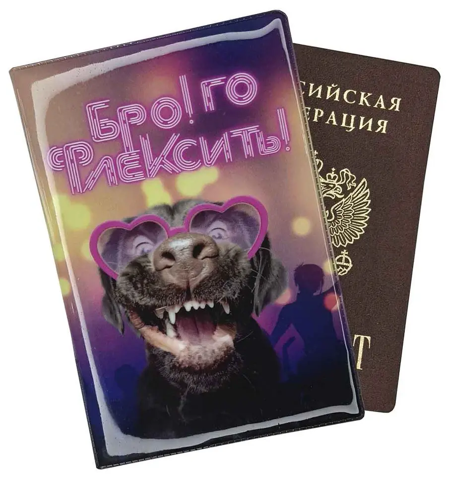 Обложка для паспорта, ПВХ глянцевый с печатью, принт "Бро! го Флексить!"