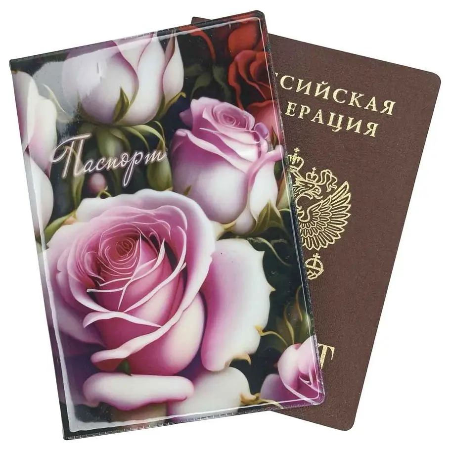 Обложка для паспорта, ПВХ глянцевый с печатью, принт "Пленительные розы" (PASSPORT)