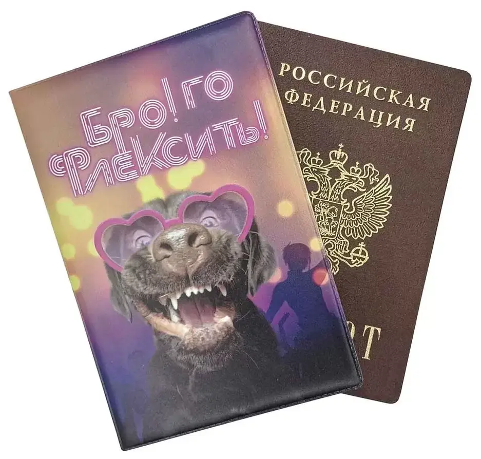 Обложка для паспорта, ПВХ матовый с печатью, принт "Бро! го Флексить!"