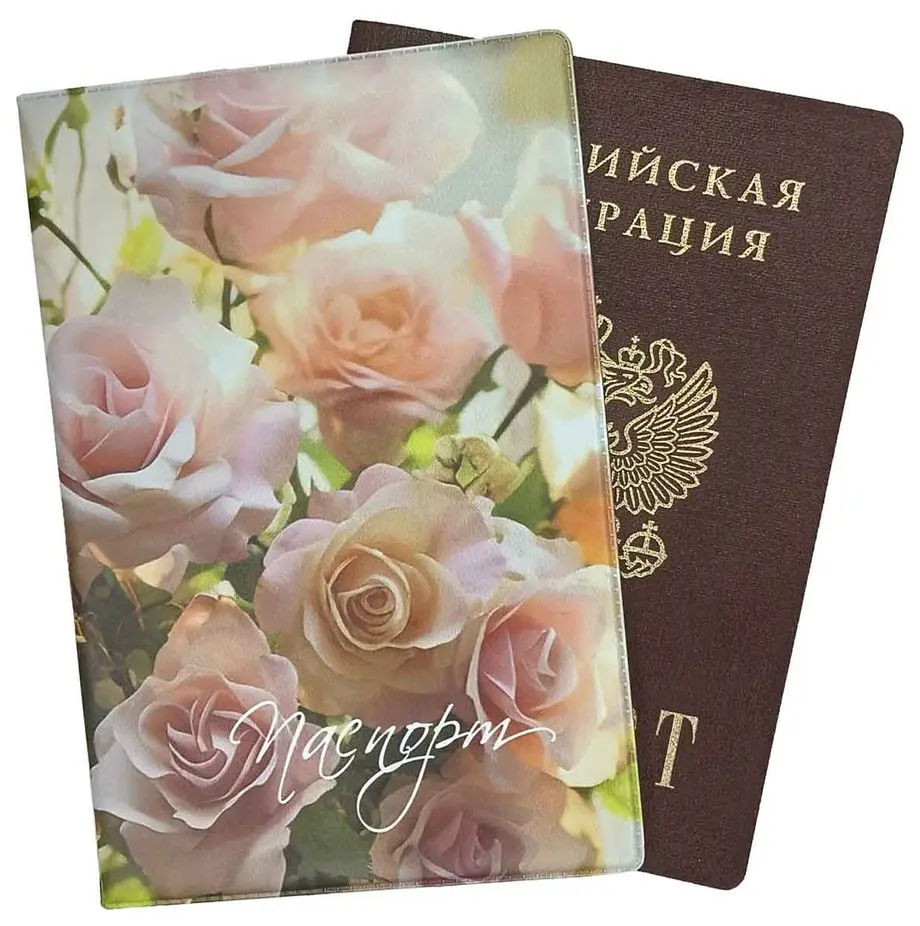 Обложка для паспорта, ПВХ матовый с печатью, принт "Утренняя роза"